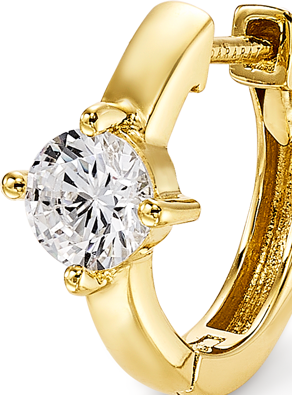 Pendientes en plata de ley con baño de oro de 1 micra de 18K y circonita talla brillante en la parte central.